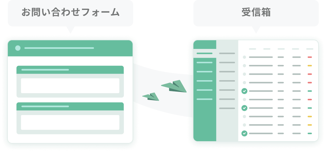 フォームやチャット機能を使ってお問い合わせフォームを作成すれば、問い合わせ管理が一ヶ所で行えます。フォームからのお問い合わせはすべて受信箱に届きます。