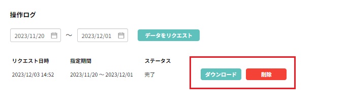 ご契約のデータ保存期間内のデータなります。グループごとやユーザーごとのダウンロードはできません。